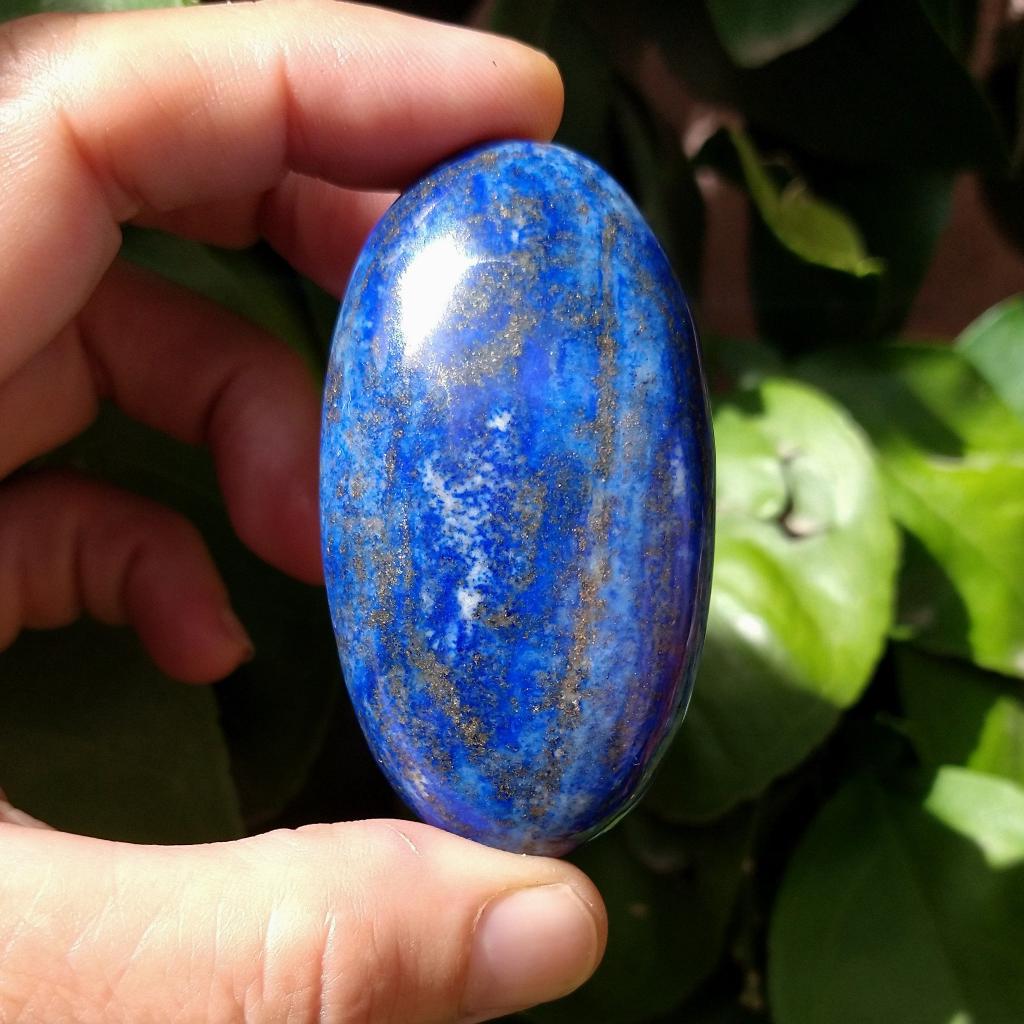 Lapis Lazuli palm stone. 2.5 inches long. This is a one-of-a-kind item - you will receive the actual item in photo. Once sold, it is gone.