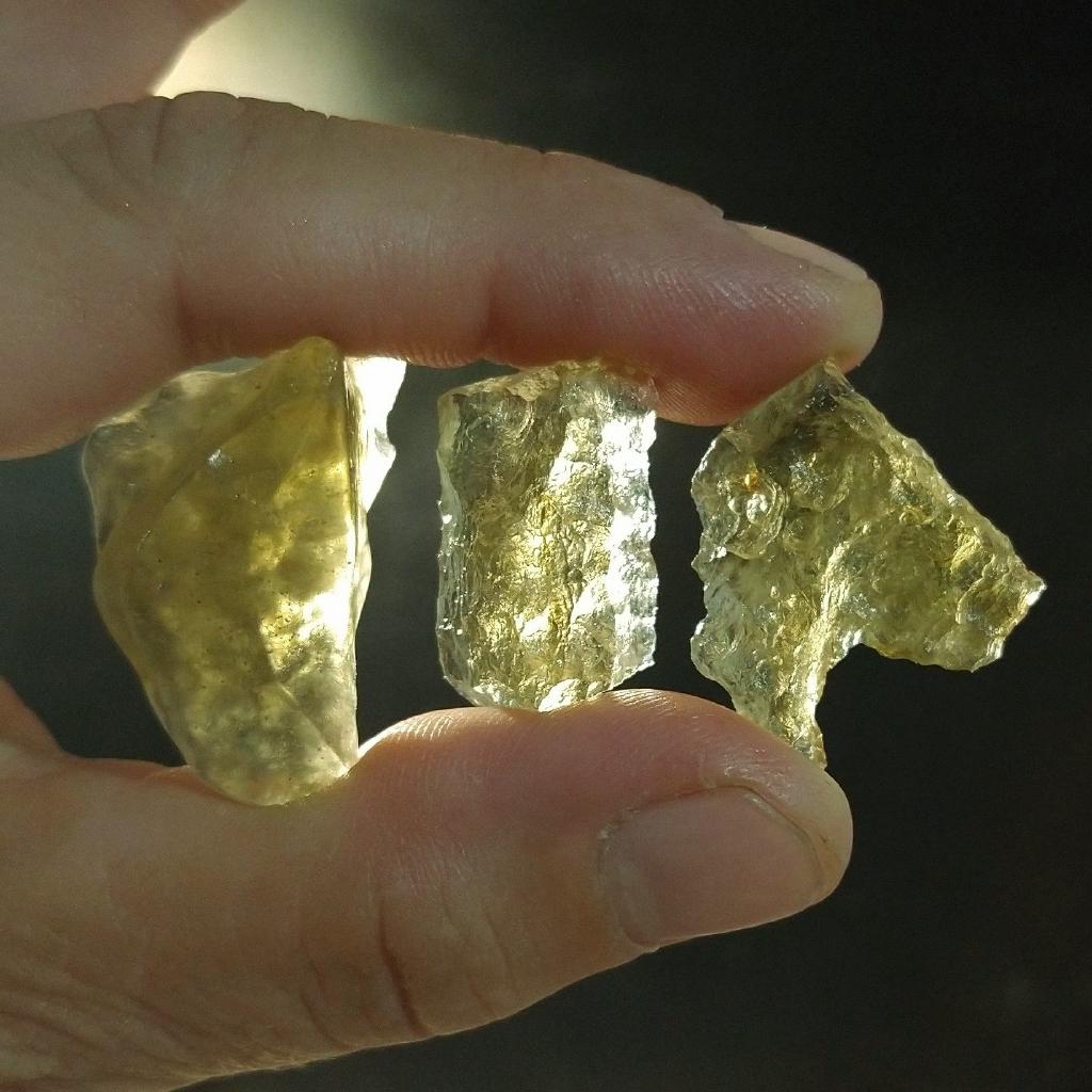 Green Libyan Glass, 6 grams. This has an olive-green tint rather than yellow. Each one unique. sold by the each.
