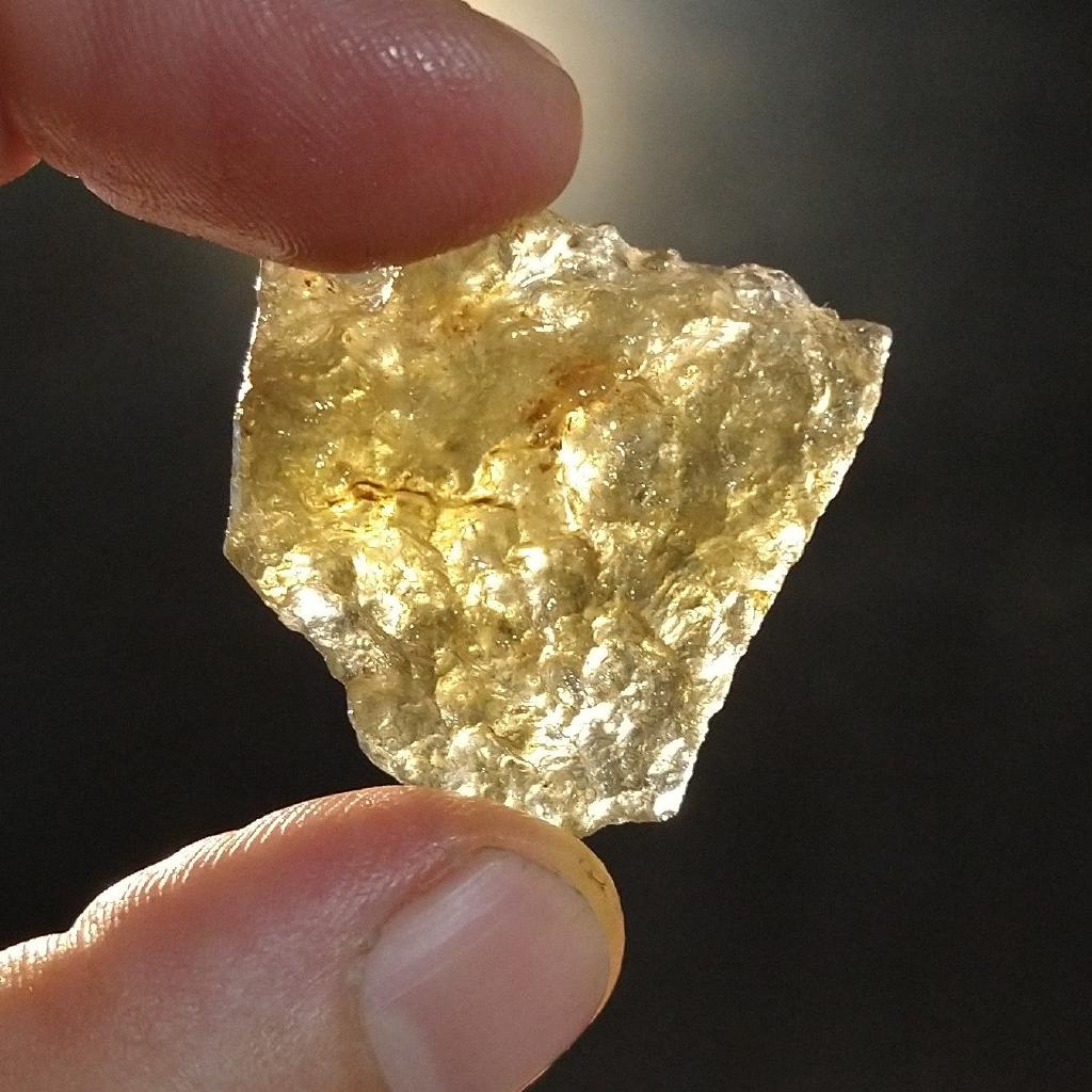 Libyan Glass, 7.76 grams, 1.2 inches long. This is a one-of-a-kind item - you will receive the actual item in phot. Once sold, it is gone.