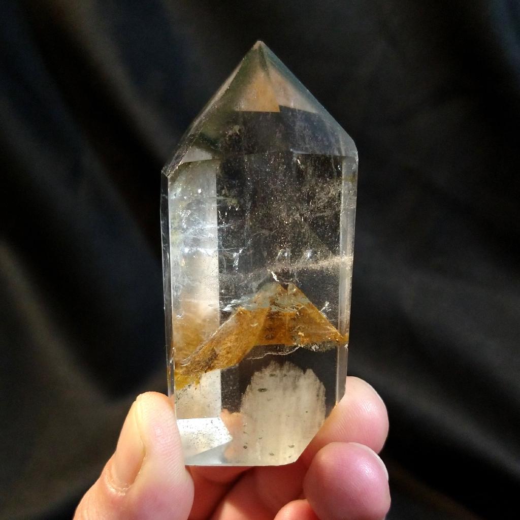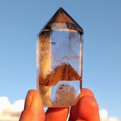 Phantom Lodolite Quartz. Cut & polished, 2.65 inches long, 0.19 pound in weight.This is a one-of-a kind item - you will receive the actual item in photo - once sold, it is gone.