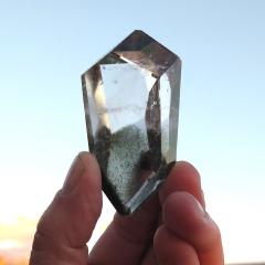 Phantom Lodolite Quartz. Cut & polished, 2.25 inches long, 0.12 pound in weight.This is a one-of-a kind item - you will receive the actual item in photo - once sold, it is gone.