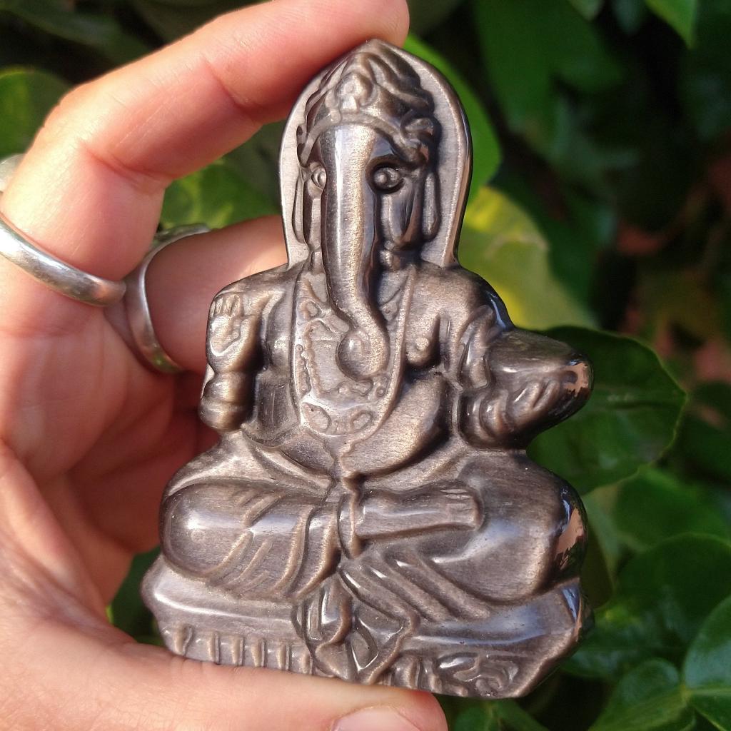 Sheen Obsidian Ganesh carving
