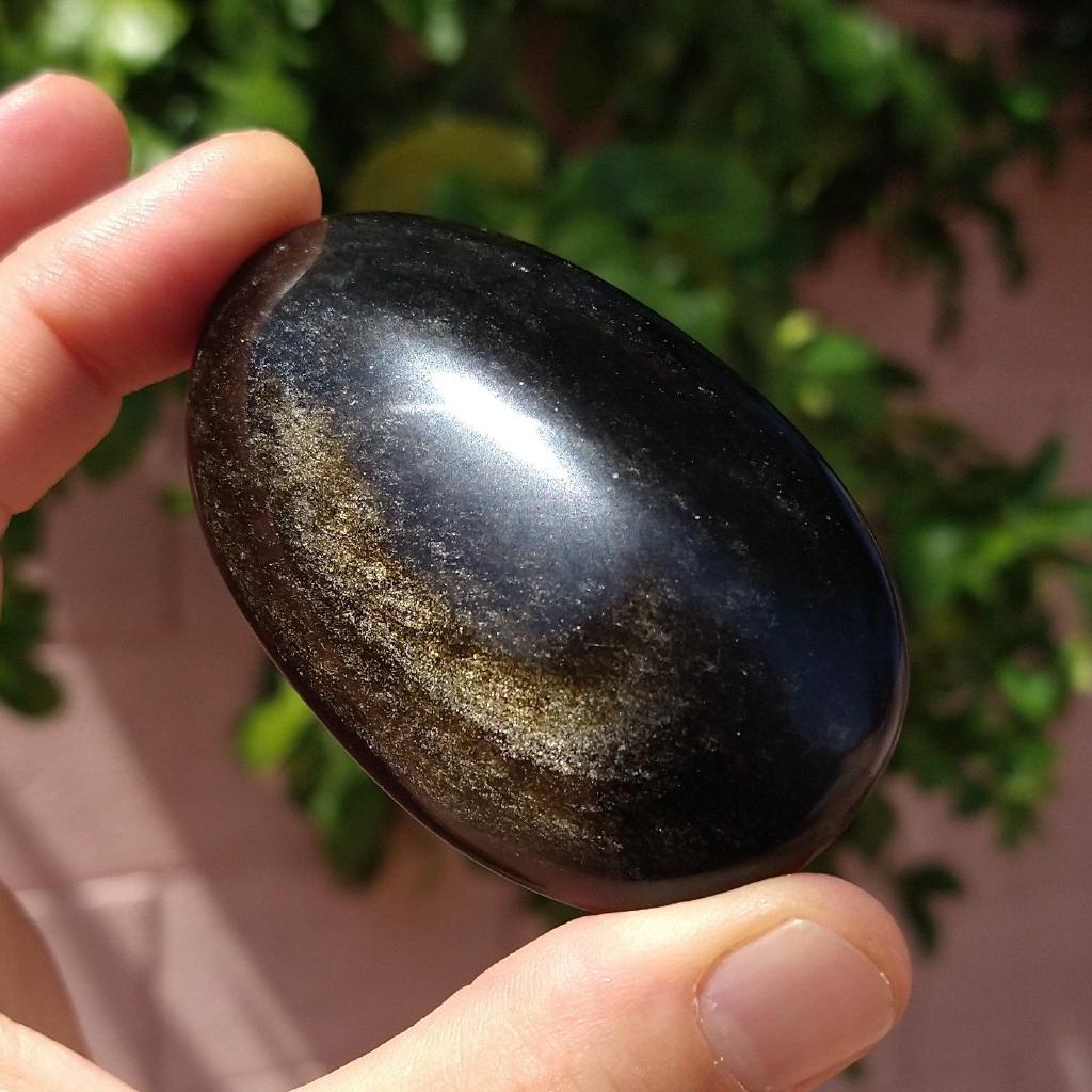 Obsidian Palm Stone. 2.75 inches long. This is a one-of-a-kind item - you will receive the actual item in photo. Once sold, it is gone.