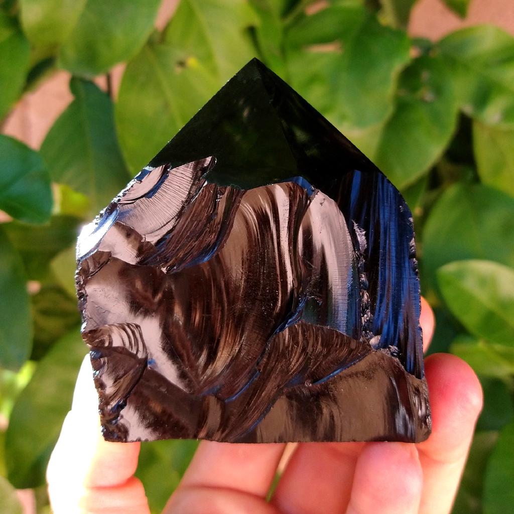 Obsidian, cut base, polished top, natural rough sides. 3.2 inches tall, 0.69 pound in weight.This is a one-of-a-kind item - you will receive the actual item in photo. Once sold, it is gone.