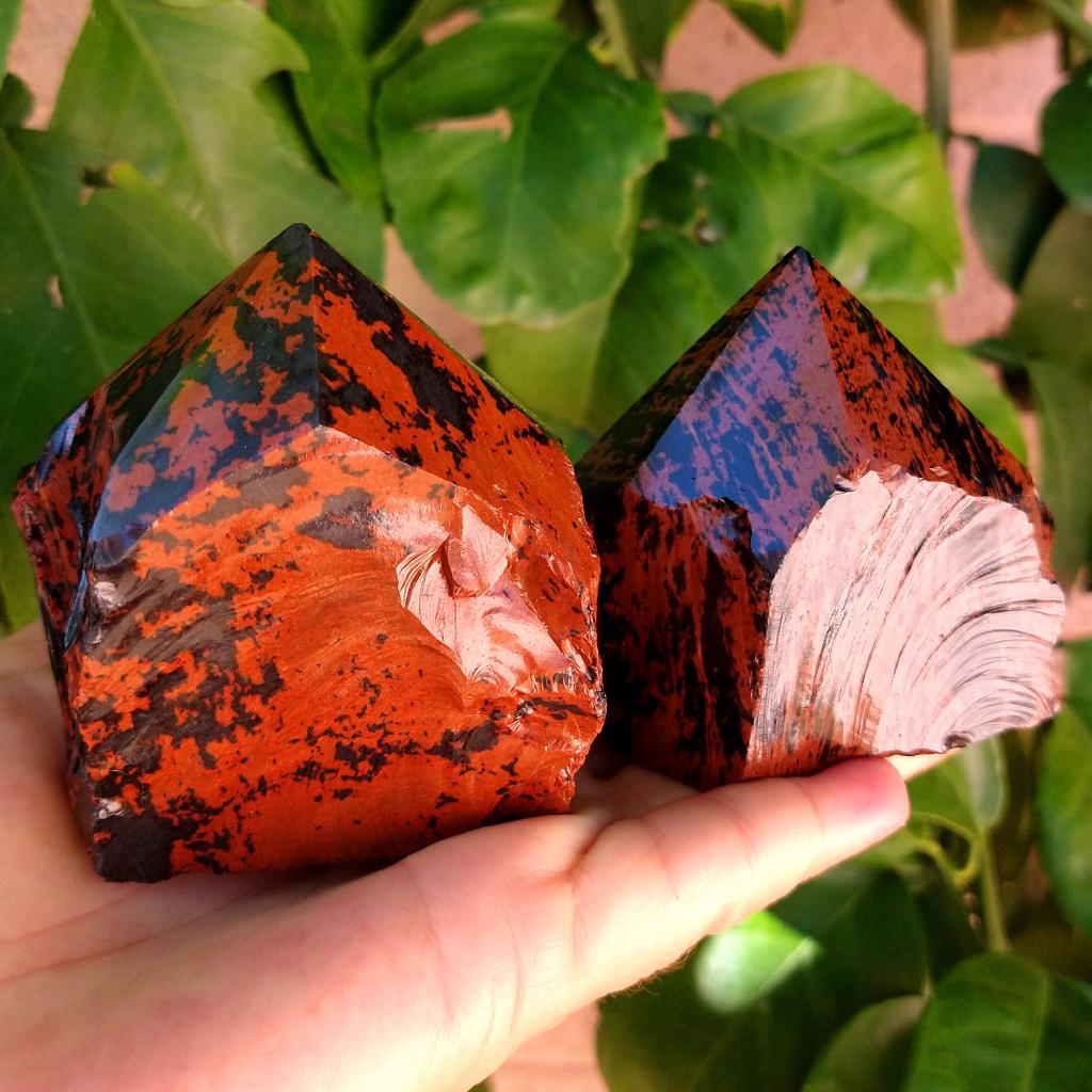 Mahogany Obsidian, cut base, polished top, natural rough sides. Approximately 2.5-2.75 inches tall. Each one unique. sold by the each.