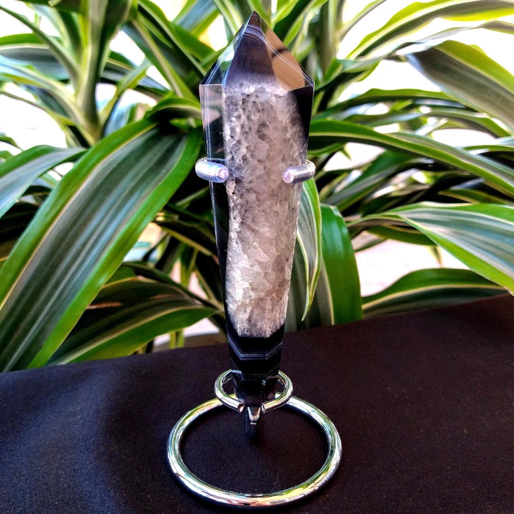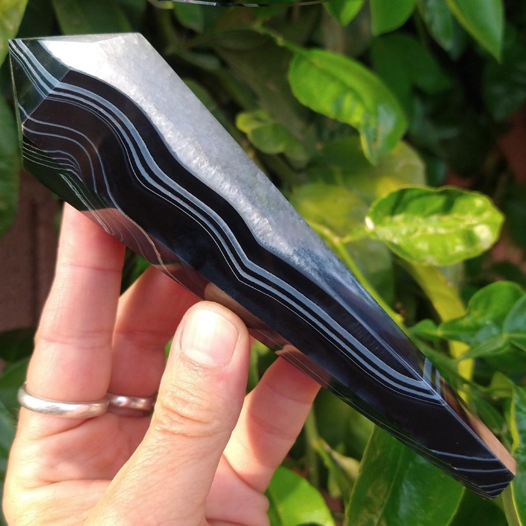 Cut & polished Onyx. 6.3 inches long. Includes display stand - see additional image showing example of display stand. This is a one-of-a-kind item - you will receive the actual item in photo. Once sold, it is gone.