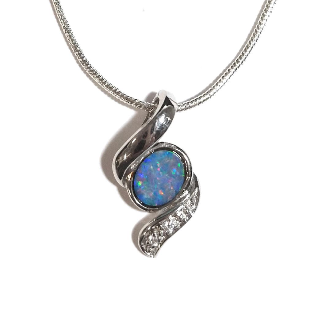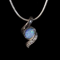 Australian Opal Pendant, set in sterling silver. 1 inch long. 18 inch silver plate courtesy chain included. This is a one-of-a-kind item - you will receive the actual item in photo. Once sold, it is gone.