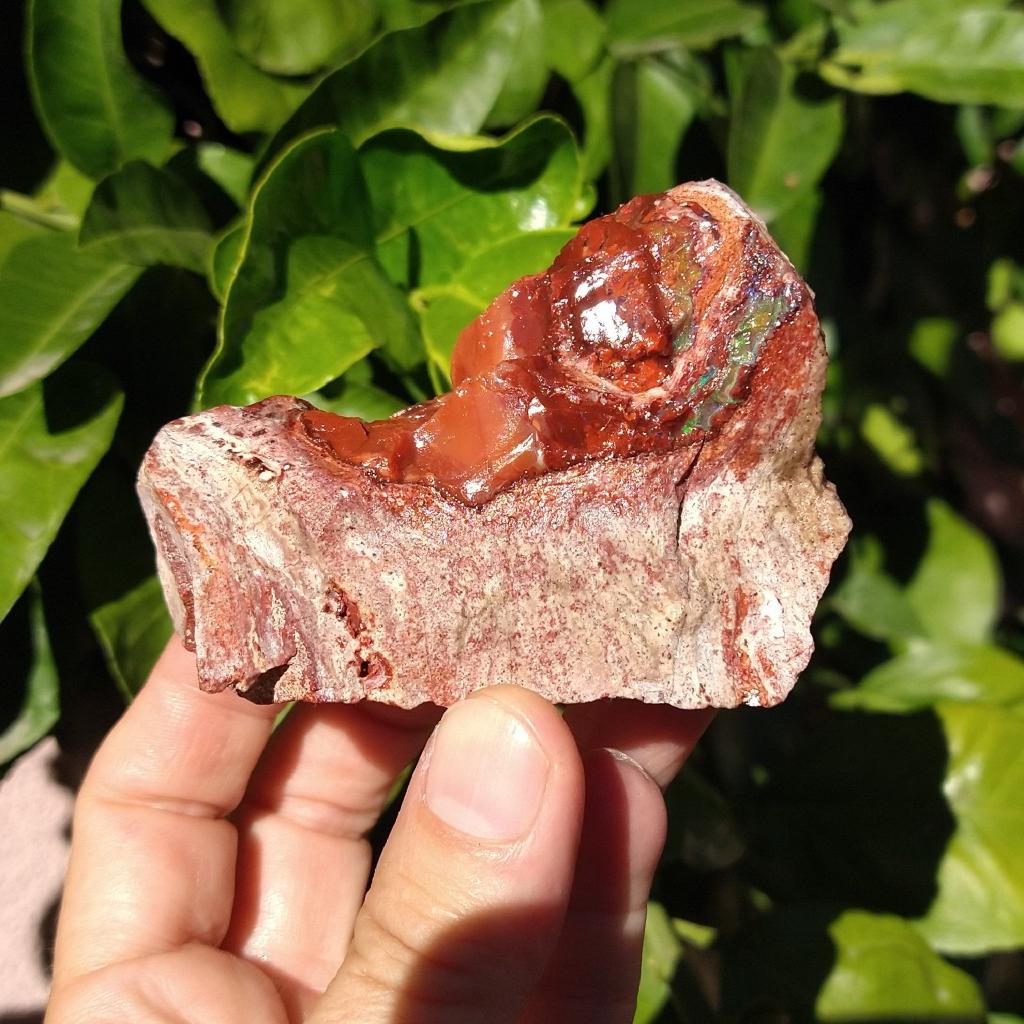 Mexican Red Fire Opal in matrix. Specimen is 3 inches long and 0.30 pound in weight. This is a one-of-a-kind item - you will receive the actual item in photo. Once sold, it is gone.
