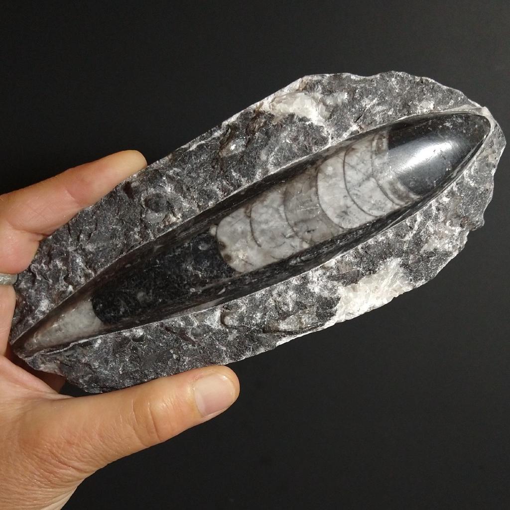 Orthoceras Fossil from Morocco. 6.7 inches long, and 1.03 pounds in weight. This is a one-of-a-kind item - you will receive the actual item in photo. Once sold, it is gone.