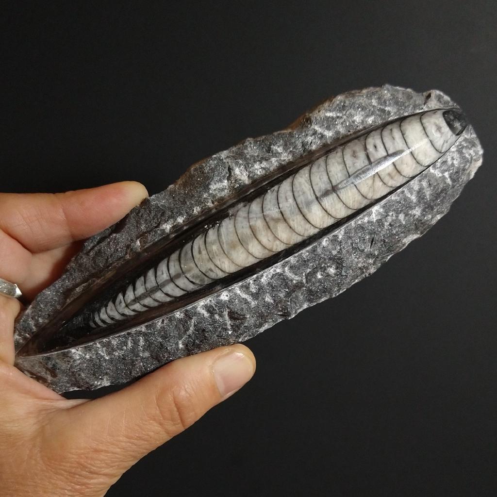 Orthoceras Fossil from Morocco. 6.25 inches long, and 0.73 pound in weight. This is a one-of-a-kind item - you will receive the actual item in photo. Once sold, it is gone.