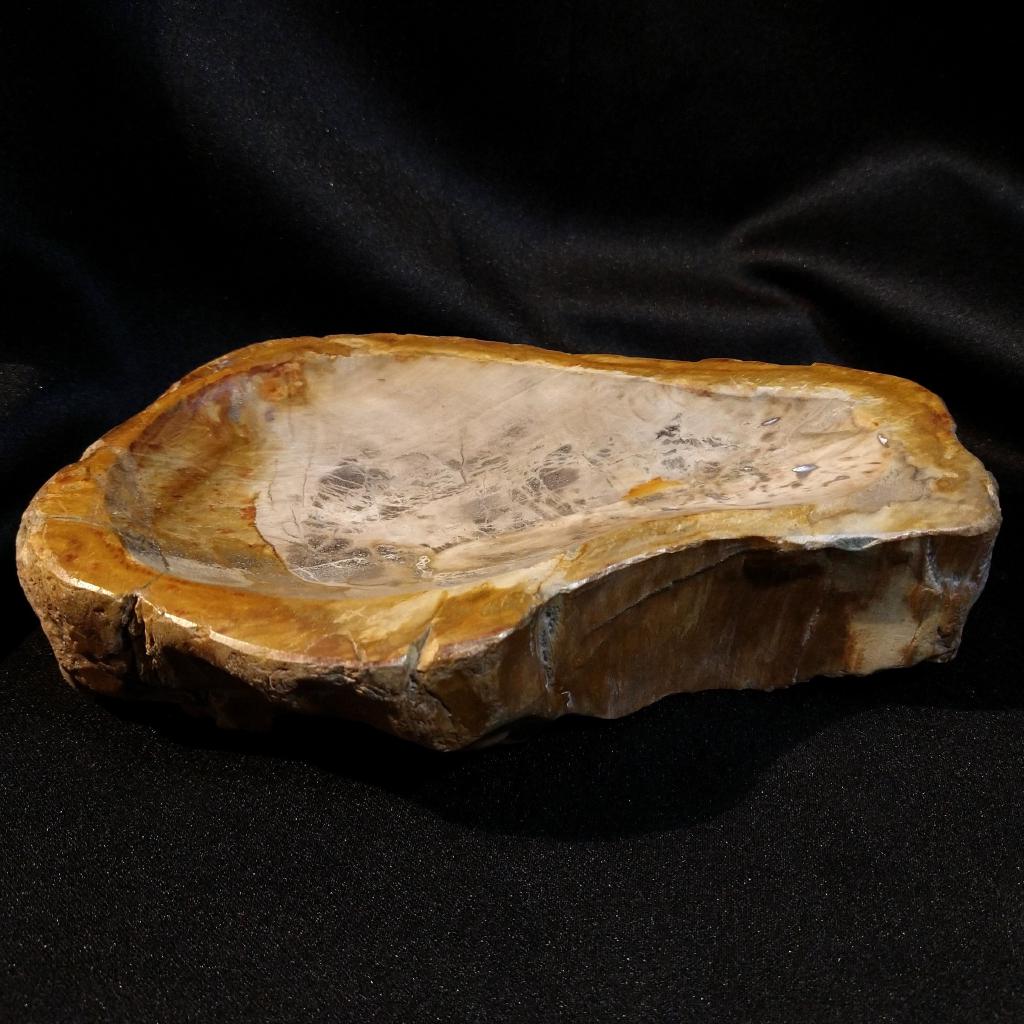 Petrified Wood Bowl, from Indonesia. 7.5 inches long. 2.98 pounds in weight. This is a one-of-a-kind item - you will receive the actual item in photo. Once sold, it is gone.