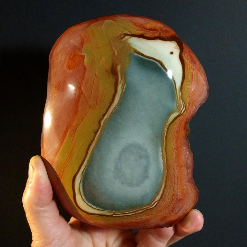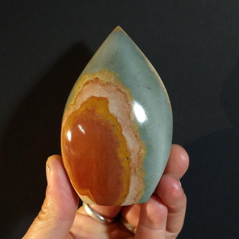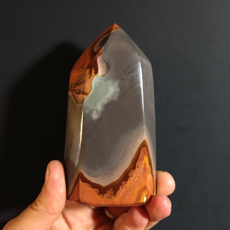 Polychrome Jasper cut & polished, from Madagascar. 7.1 inches tall, 2.25 pounds in weight. This is a one-of-a kind item - you will receive the actual item in photo - once sold, it is gone.