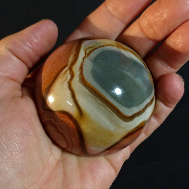 Polychrome Jasper cut & polished. From Madagascar. 2.5 inches in diameter, 0.32 pound in weight. This is a one-of-a kind item - you will receive the actual item in photo - once sold, it is gone.