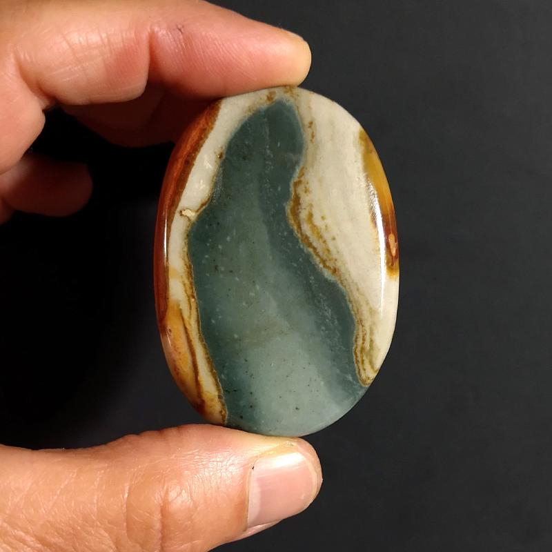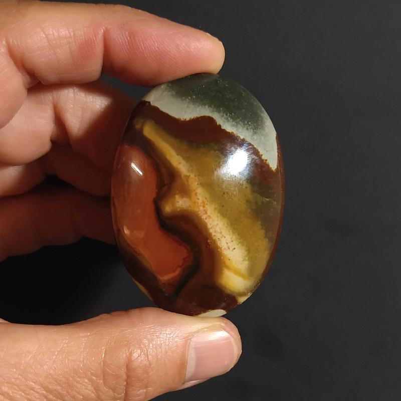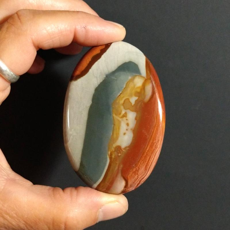 Polychrome Jasper Palm Stone, from Madagascar. Approximately 2 - 2.25 inches long and 0.13-0.15 pound in weight. Each one unique. Sold by the each.