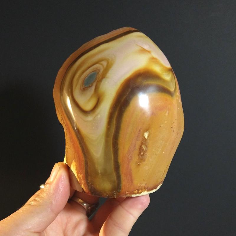 Polychrome Jasper cut & polished, from Madagascar. 4.75 inches tall, 1.52 pounds in weight.
