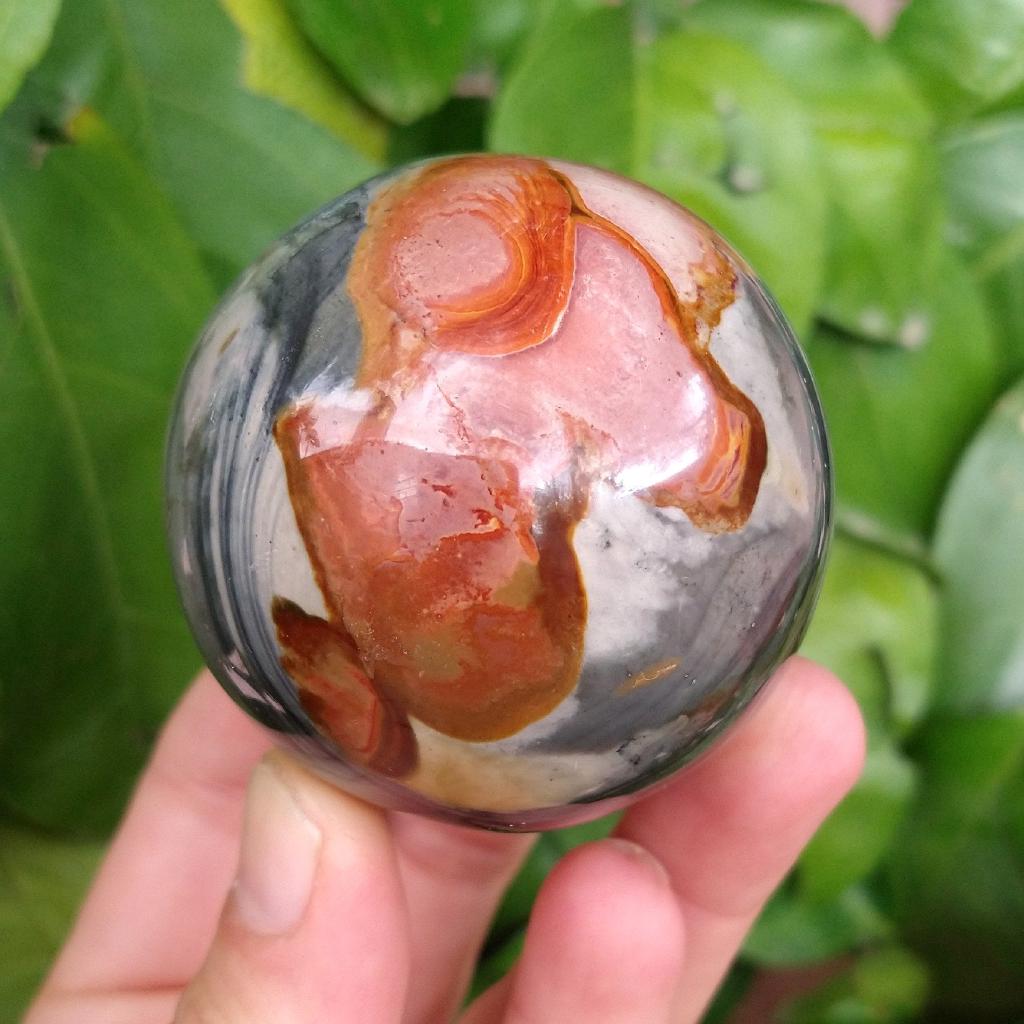 Polychrome Jasper Sphere, from Madagascar. 2.15 inches wide, 0.49 pounds in weight. This is a one-of-a kind item - you will receive the actual item in photo - once sold, it is gone.