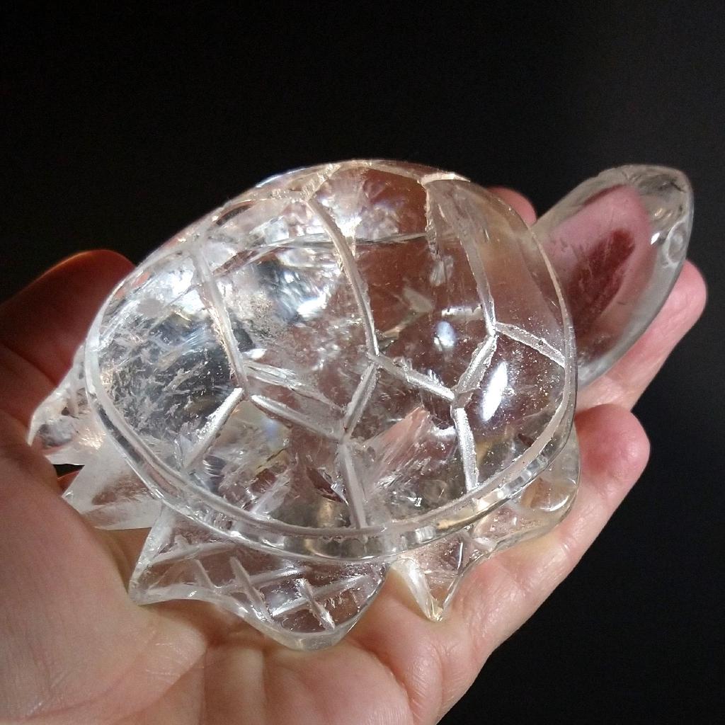 Quartz Crystal Turtle, carved from a single piece of Quartz. 4.25 inches long, 0.78 pound in weight. This is a one-of-a-kind item - you will receive the actual item in photo, and once sold, it is gone.