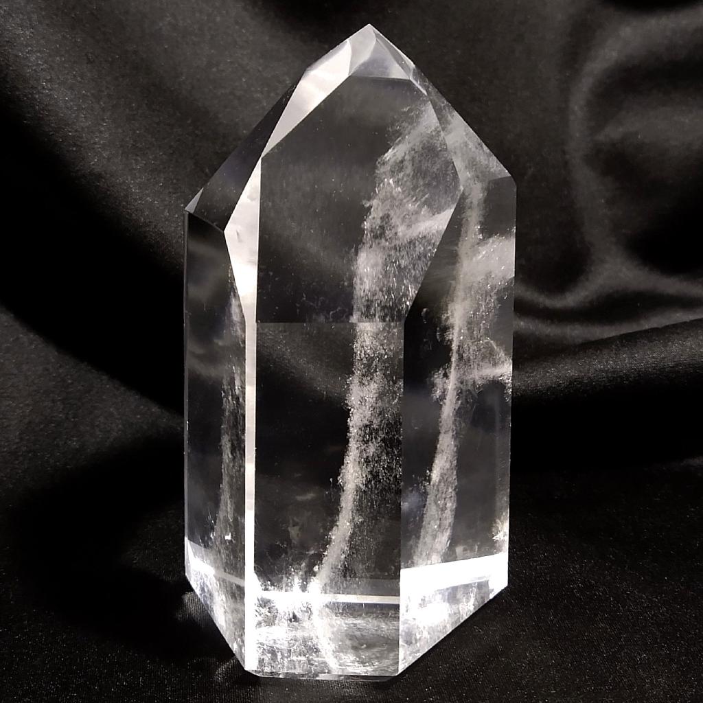 Quartz Crystal, cut and polished. 4.8 inches tall. 1.62 pounds in weight. This is a one-of-a kind item - you will receive the actual item in photo - once sold, it is gone.