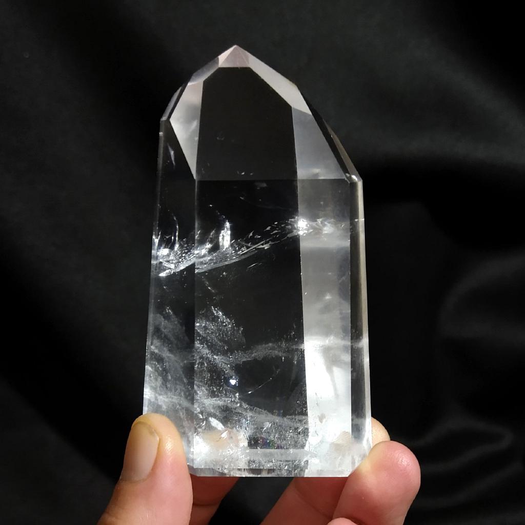 Quartz Crystal, cut and polished. 3.65 inches tall. 0.56 pound in weight.This is a one-of-a kind item - you will receive the actual item in photo - once sold, it is gone.