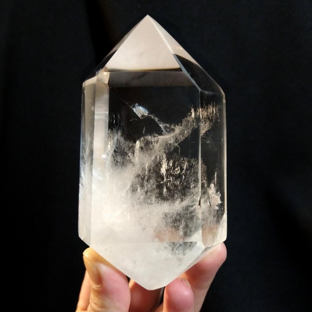 Quartz Crystal. Cut and polished double-terminated. 5.1 inches long. 0.97 pound in weight.This is a one-of-a kind item - you will receive the actual item in photo - once sold, it is gone.