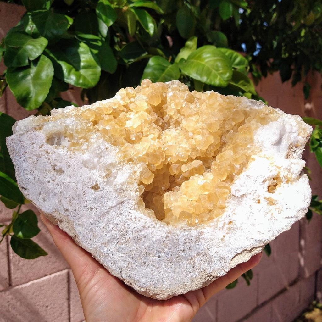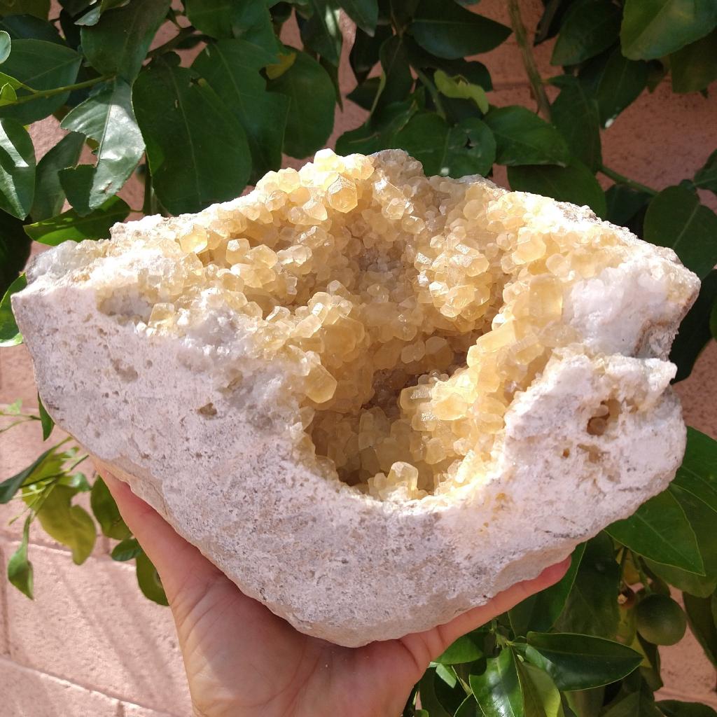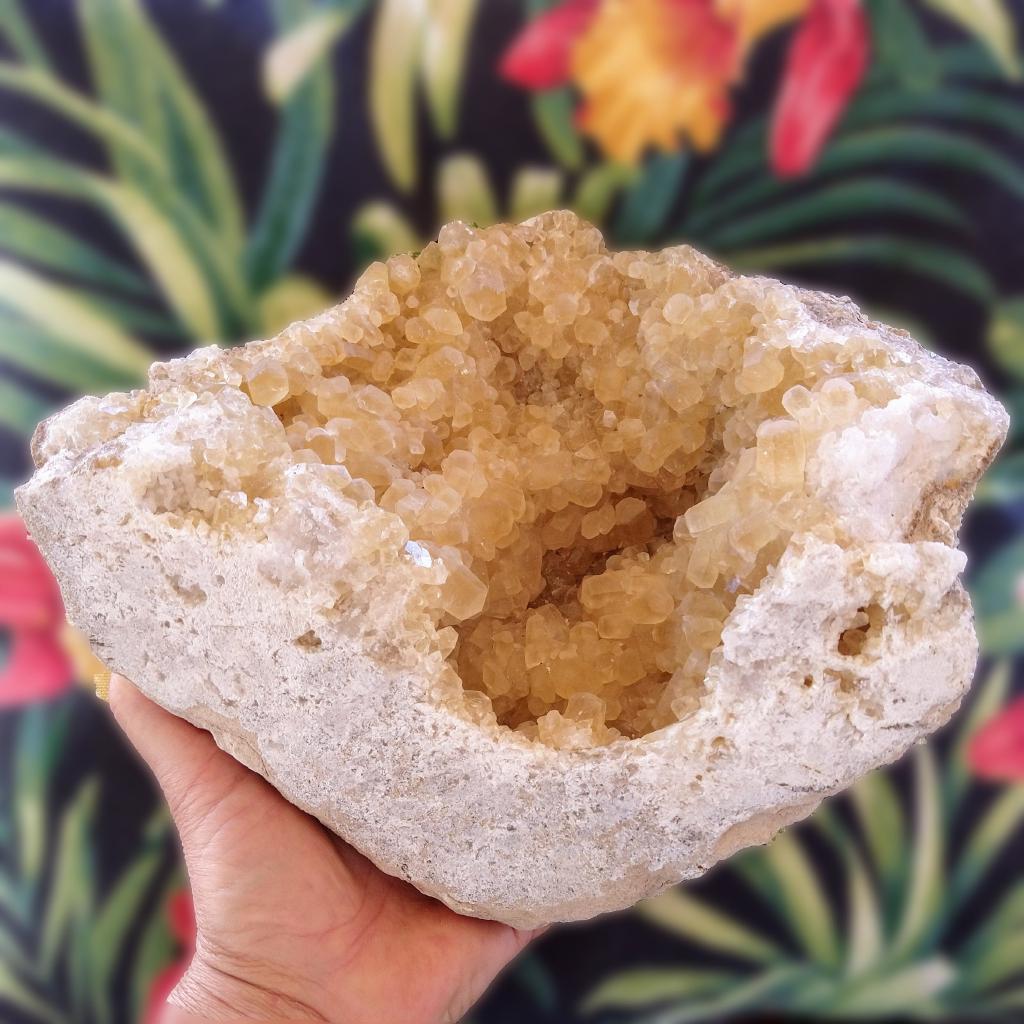 Geode from Morocco. 8 inches wide, 5.57 pounds in weight.See additional images.This is a one-of-a-kind item - you will receive the actual item in photo. Once sold, it is gone.