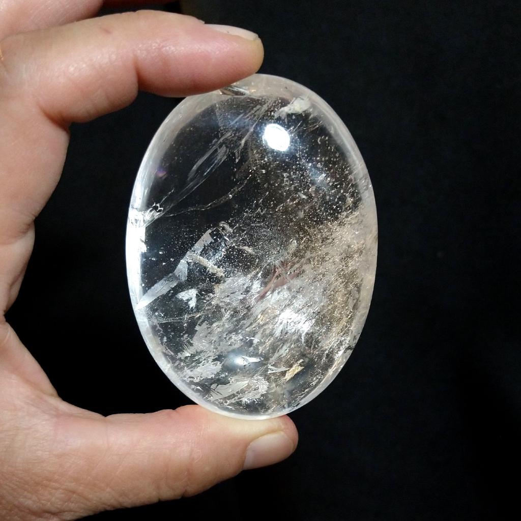 Quartz Crystal palm stone, 3 inches long.This is a one-of-a kind item - you will receive the actual item in photo - once sold, it is gone.