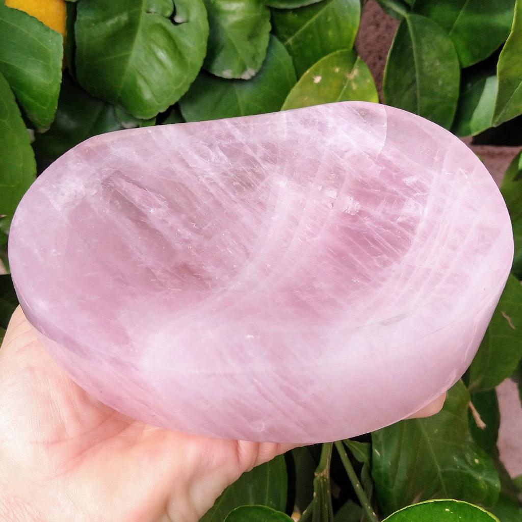 Rose Quartz Bowl, 5.75 inches long, 2.55 pounds in weight.This is a one-of-a-kind item - you will receive the actual item in photo. Once sold, it is gone.
