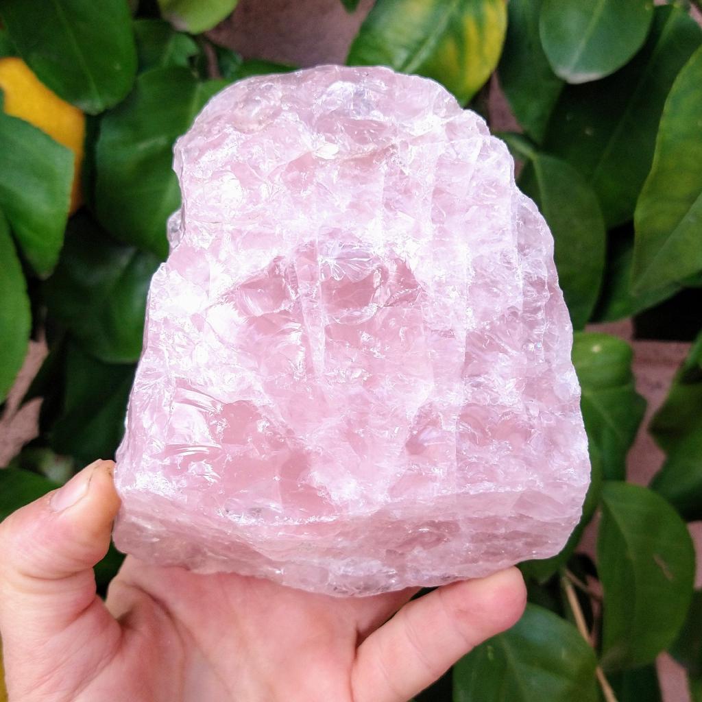 Rose Quartz rough piece. 4.65 inches long, 1.7 pounds in weight. This is a one-of-a-kind item. You will receive the actual item in photo. Once sold, it is gone.