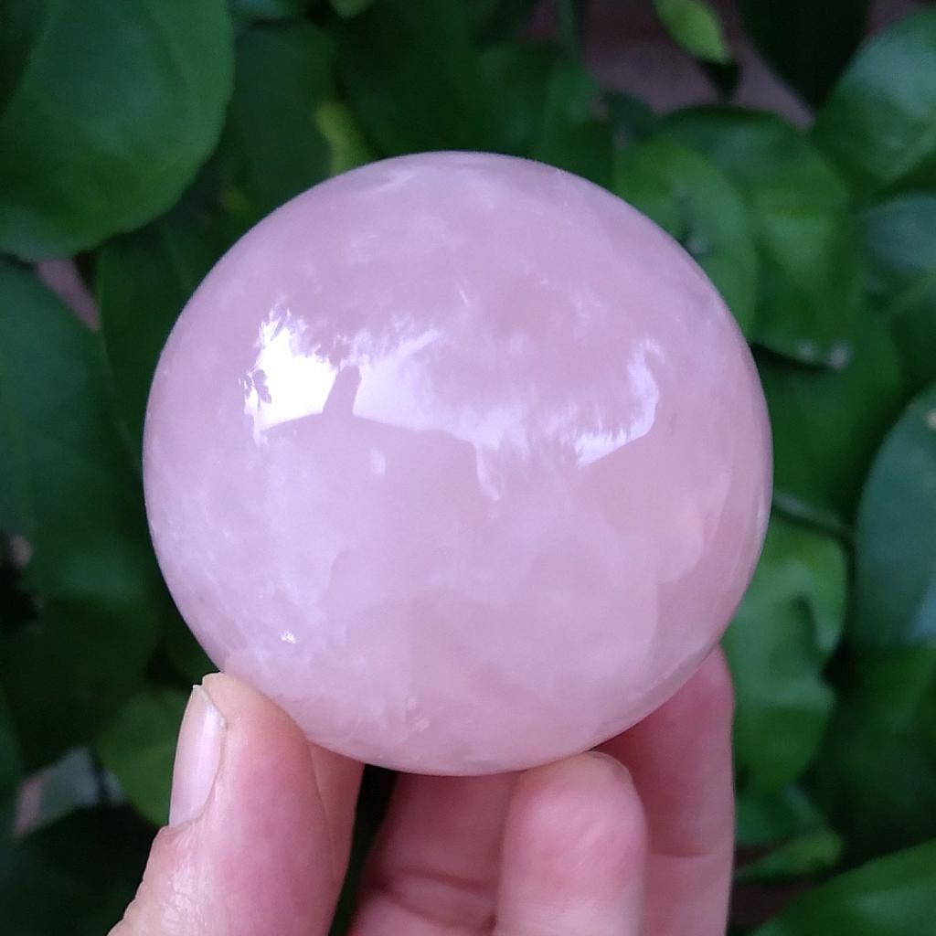 Rose Quartz Sphere, 2.25 inches in diameter, 0.60 pound in weight.This is a one-of-a-kind item. You will receive the actual item in photo. Once sold, it is gone.