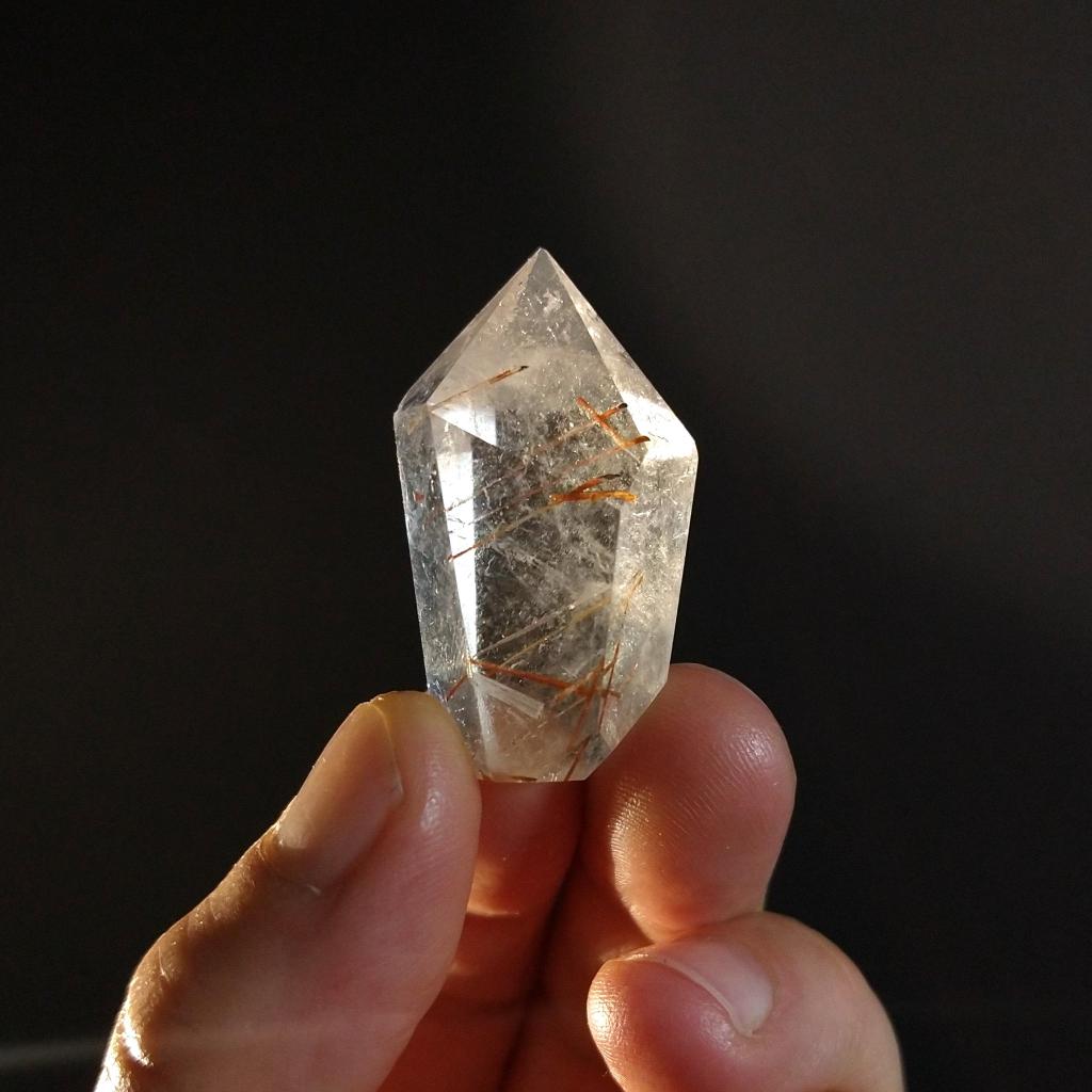 Rutilated Quartz# RUT-4Rutilated Quartz, cut & polished. 1.5 inches long. This is a one-of-a-kind item - once sold, it is gone.$11.00
