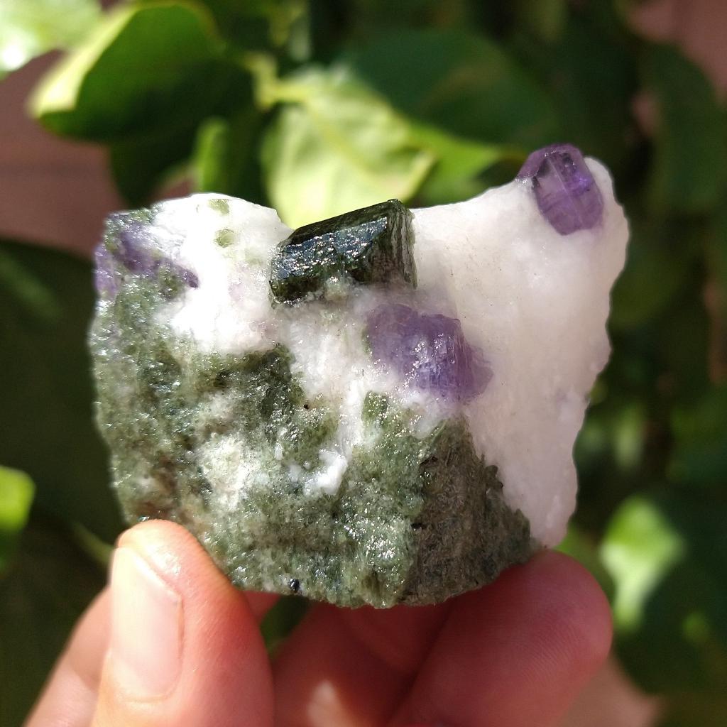 Scapolite and Diopside on White Quartz specimen. 2.2 inches long, 79.7 grams.This is a one-of-a kind item - you will receive the actual item in photo - once sold, it is gone.