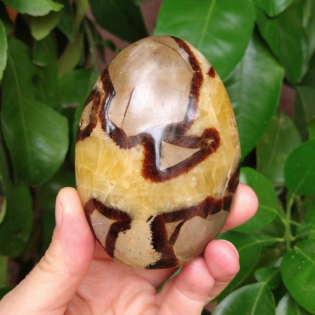 Septarian, cut & polished, from Madagascar. 3.25 inches long, 0.61 pound in weight. This is a one-of-a-kind item - you will receive the actual item in photo. Once sold, it is gone.