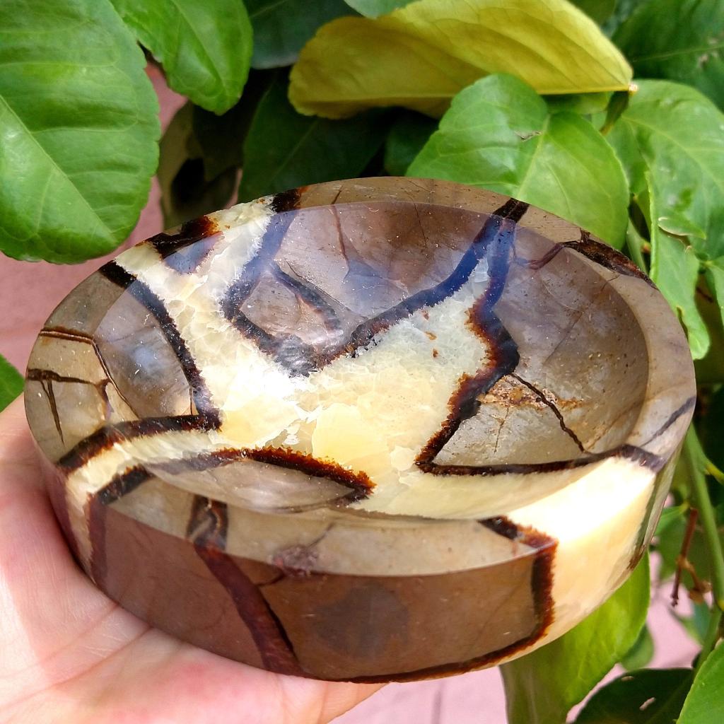 Septarian Nodule Bowl, from Madagascar. 4.65 inches long, 1.11 pounds in weight.This is a one-of-a-kind item - you will receive the actual item in photo. Once sold, it is gone.