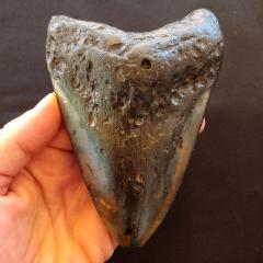 Megalodon Fossil Shark Tooth. 4.8 inches long, 0.52 pound in weight. This is a one-of-a-kind item - you will receive the actual item in photo. Once sold, it is gone.