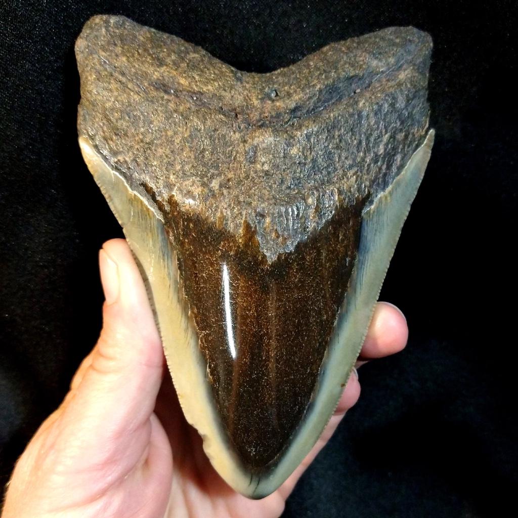Megalodon Fossil Shark Tooth, partially polished, grade “A”. 4.8 inches long, 0.50 pound in weight.This is a one-of-a-kind item - you will receive the actual item in photo. Once sold, it is gone.