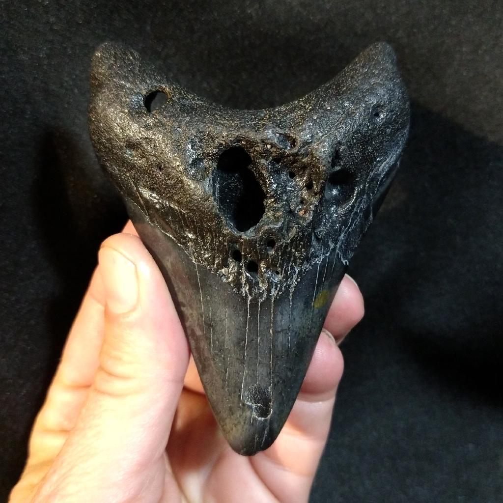 Megalodon Fossil Shark Tooth. 3.5 inches long, 0.19 pound in weight. This is a one-of-a-kind item - you will receive the actual item in photo. Once sold, it is gone.