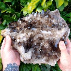 Smoky Quartz Cluster specimen, 12 inches long, 17.69 pounds in weight. Display stand included - see additional images.This is a one-of-a kind item - you will receive the actual item in photo - once sold, it is gone.