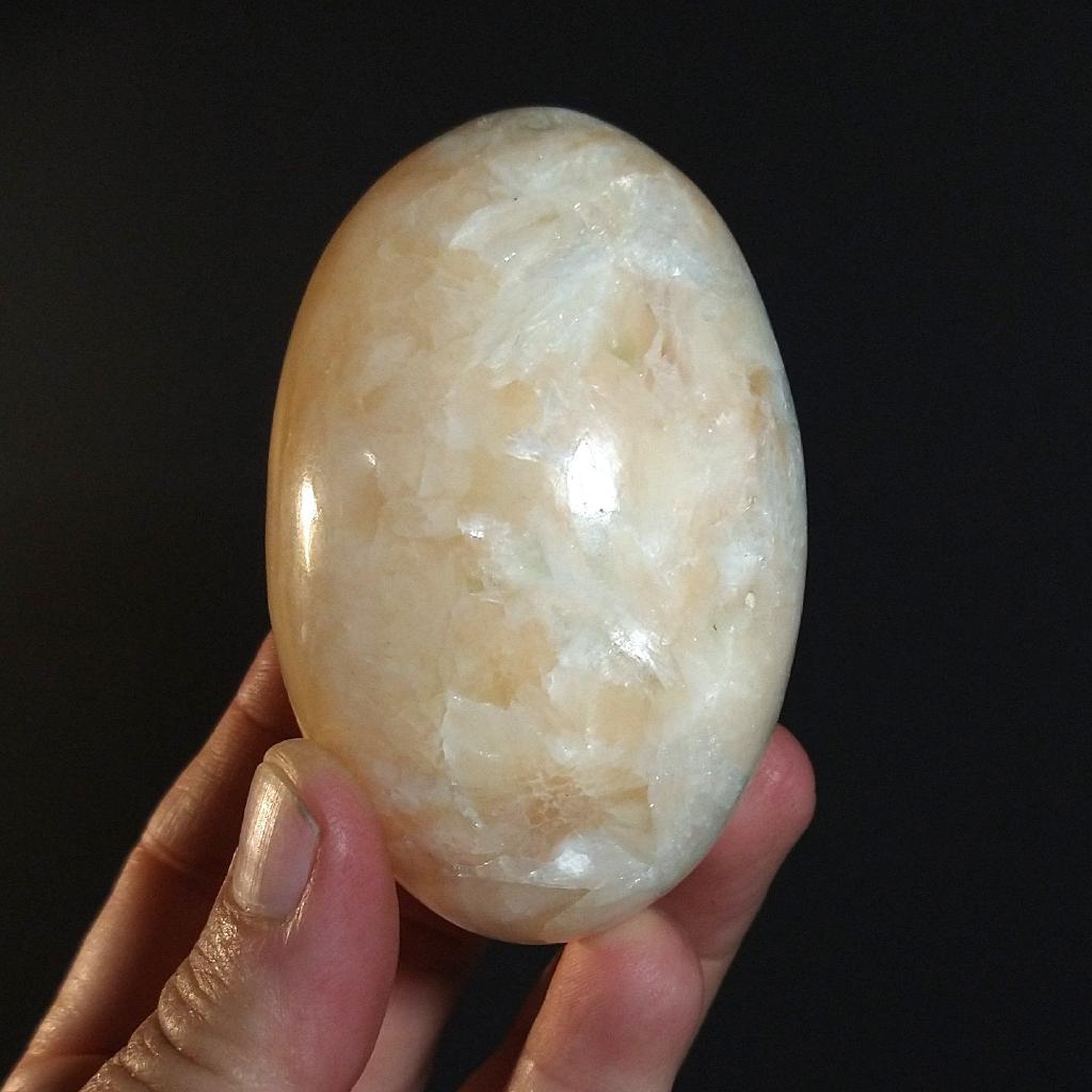 Stilbite Lingam from India. 3 inches long, 0.43 pound in weight. This is a one-of-a kind item - you will receive the actual item in photo - once sold, it is gone.