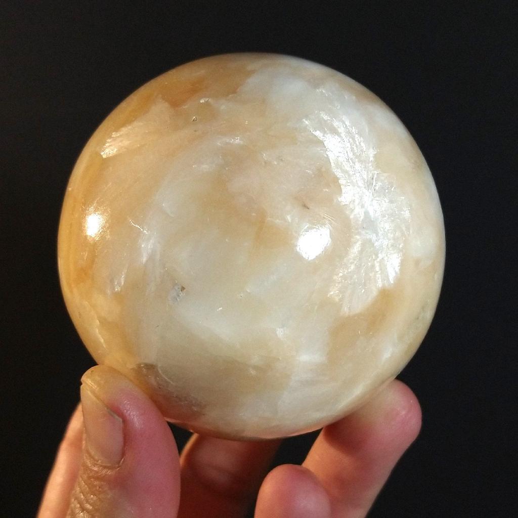 Stilbite Sphere from India. 2.75 inches in diameter, 0.82 pound in weight. This is a one-of-a kind item - you will receive the actual item in photo - once sold, it is gone.