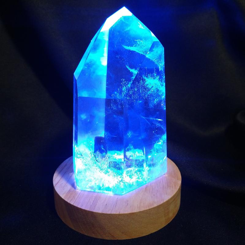 Color Changing Wood Lighted Display Stand. Appropriate for spheres or flat-base stones. USB cord with switch. 4 inches in diameter, with 1.25 inch diameter hole.(crystal not included)