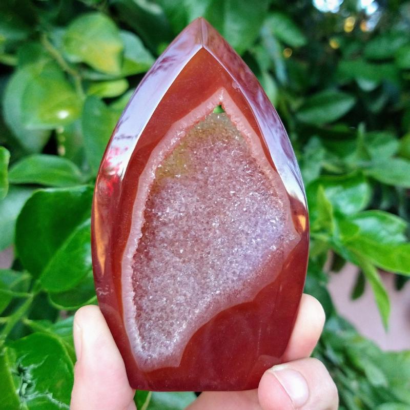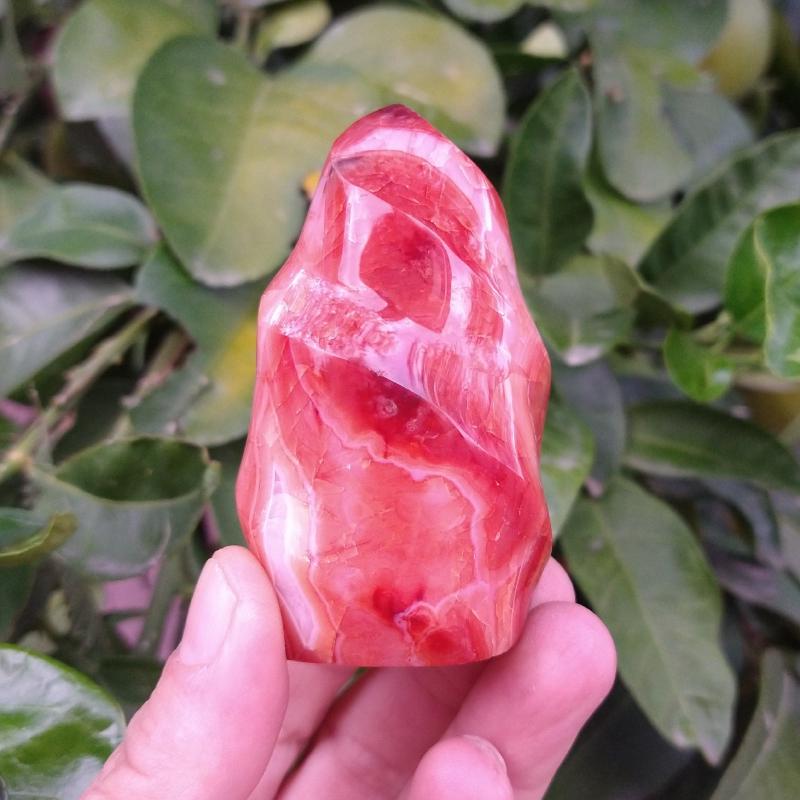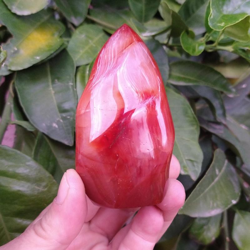 Polished Carnelian. 5 inches long, and 1.55 pounds in weight. This is a one-of-a kind item - you will receive the actual item in photo - once sold, it is gone.
