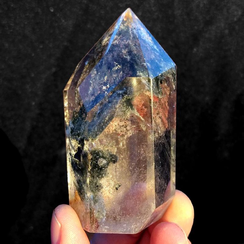 Cut & polished Golden Healer Quartz. 5.3 inches tall, 1.57 pounds in weight. This is a one-of-a-kind item - you will receive the actual item in photo. Once sold, it is gone.