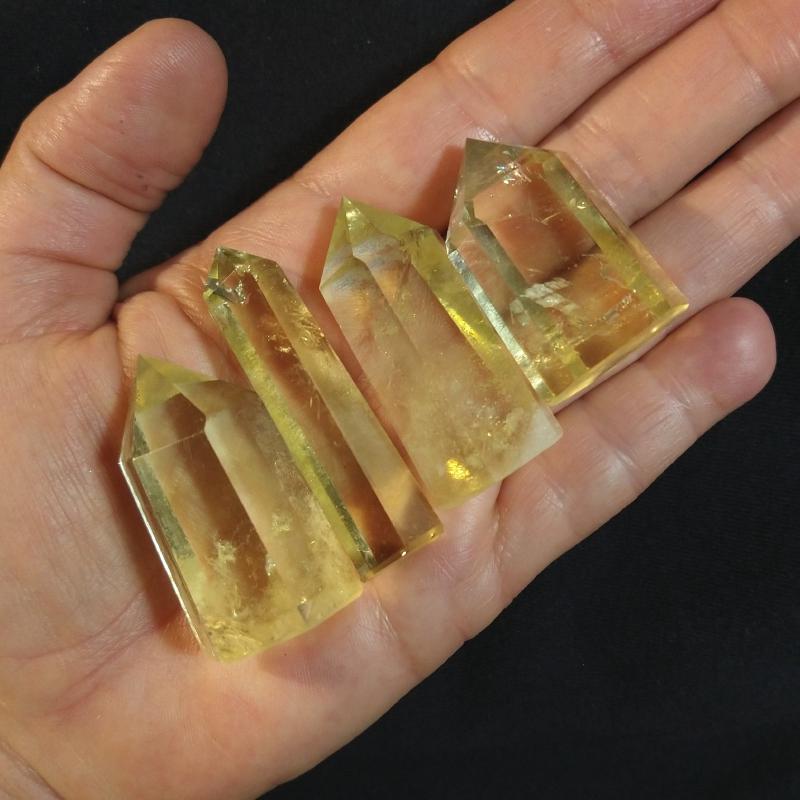 Polished Golden Healer Quartz palm stone. Approximately 2 inches long.Each one unique. Sold by the each.