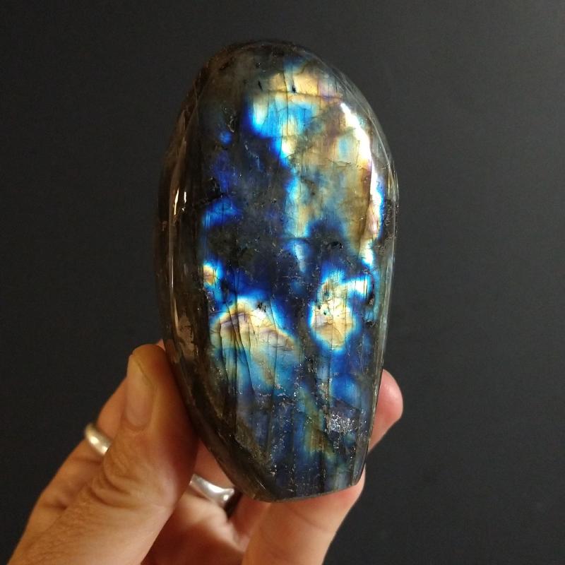 Small Black Moonstone Flame. 3 inches tall, 0.54 pound in weight.
