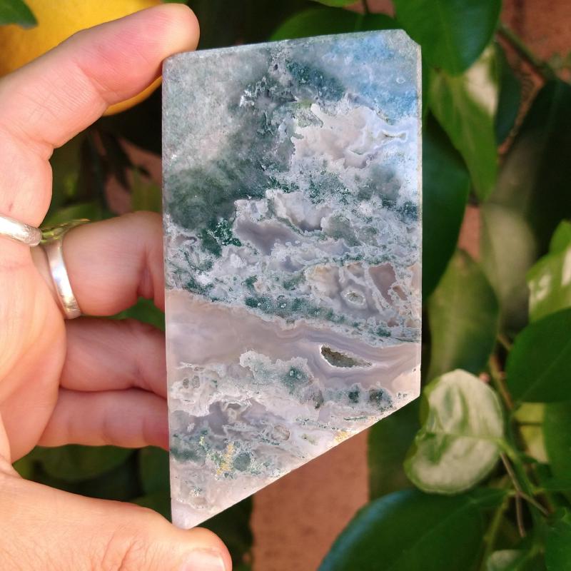 Green Ocean Jasper. 8.5 inches long, 0.7 inch thick, 3.10 pounds in weight. This is a one-of-a-kind item - you will receive the actual item in photo. Once sold, it is gone.