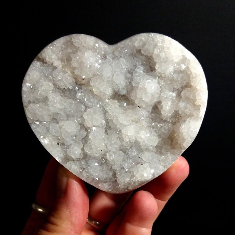 Volcano Agate Heart, with quartz. 2.65 inches wide. This is a one-of-a-kind item - you will receive the actual item in photo. Once sold, it is gone.