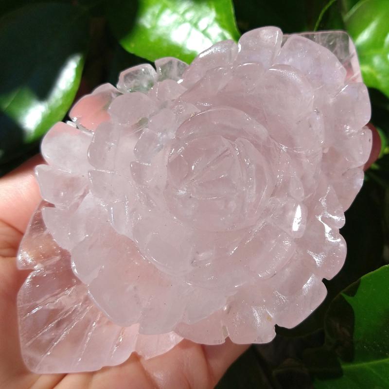 Rose Quartz Peony. 5 inches long, 0.68 pound in weight. This is a one-of-a-kind item - you will receive the actual item in photo. Once sold, it is gone.