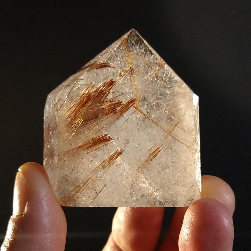 Rutilated Quartz, cut & polished. 1.5 inches long. This is a one-of-a-kind item - once sold, it is gone.