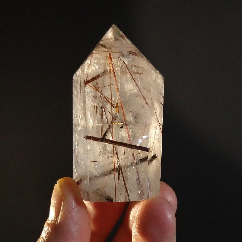 Rutilated Quartz, polished. 1.3 inches long. This is a one-of-a-kind item - once sold, it is gone.