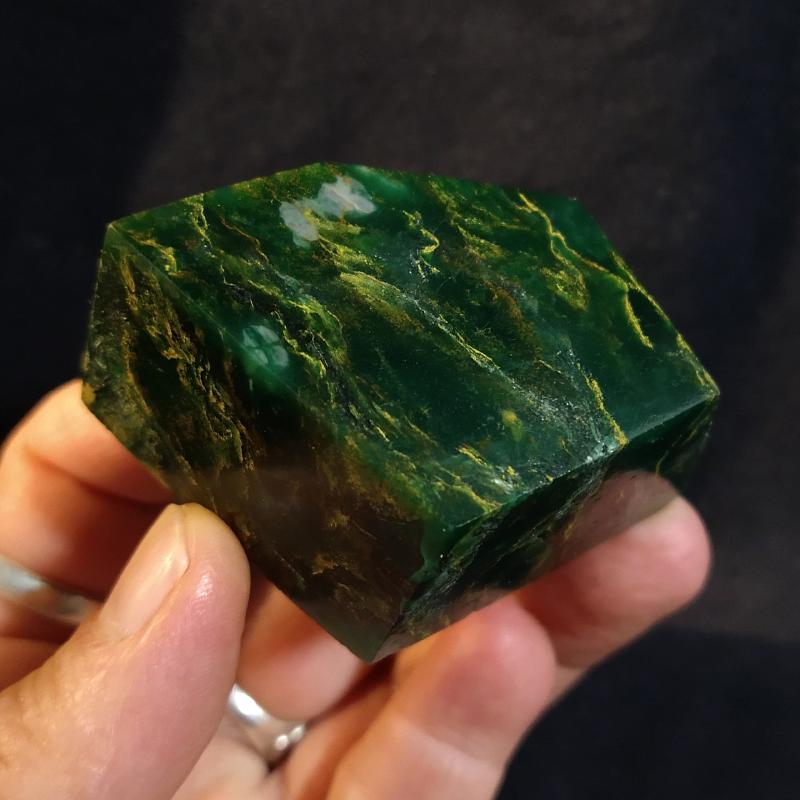 Nephrite Jade, free-form cut and polished. 5.2 inches long, 3 pounds in weight. This is a one-of-a kind item - you will receive the actual item in photo - once sold, it is gone.
